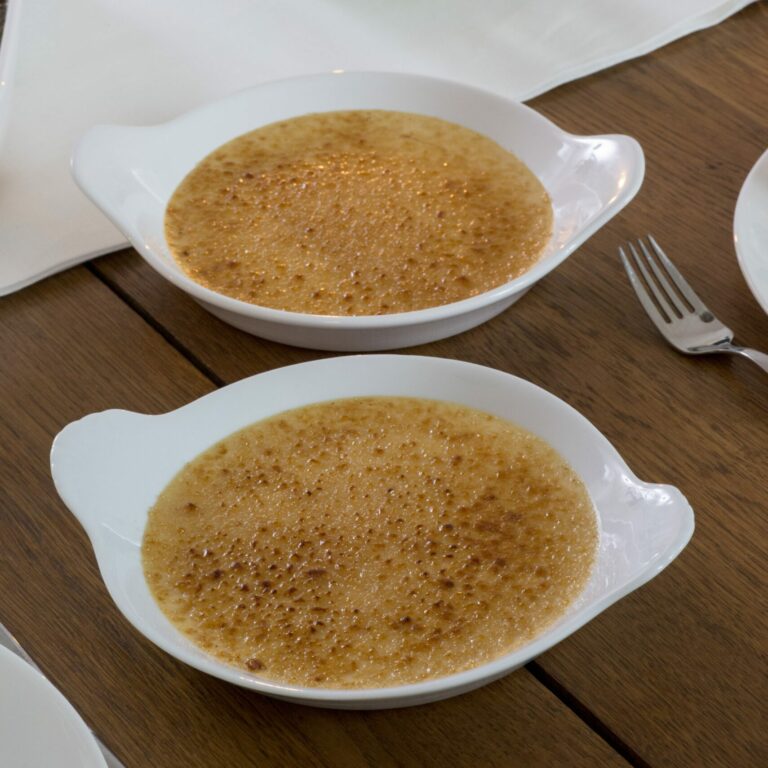 5. Répartissez la préparation dans des ramequins résistants à la chaleur. Placez-les dans une plaque de cuisson profonde et remplissez la plaque d’eau chaude jusqu’à ce que l’eau arrive en dessous du bord des moules. Dans un four préchauffé, glissez la plaque de cuisson sur le 2ème rail en partant du bas et laissez cuire les crèmes brûlées pendant 30 minutes à 130° C (chaleur tournante). Au sortir du four laissez-les refroidir puis placez-les au réfrigérateur pour une durée de 2 à 3 heures.