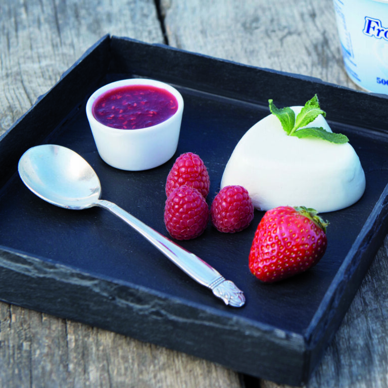- Pendant ce temps, mixez les petits fruits en purée très fine avec le jus de citron et le sucre. Réservez le coulis au frais. Au moment de servir, démoulez les mousses au fromage frais et servez-les accompagnées du coulis et de quelques fruits rouges.